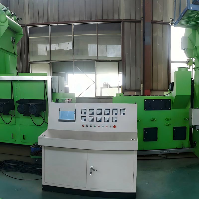पृष्ठभाग उपचारांसाठी वीट पृष्ठभाग. हे अपघर्षक अभिसरण, धूळ संकलन आणि स्वयंचलित संदेशन एकत्रित करते